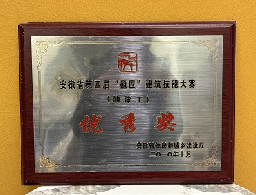 安徽省第四屆“徽匠”建筑技能大賽(油漆工)優(yōu)秀獎