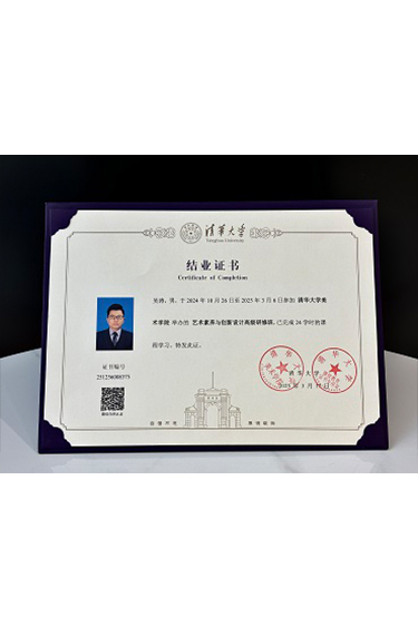 吳濤榮獲 清華大學(xué)美術(shù)學(xué)院《藝術(shù)素養(yǎng)與創(chuàng)新設(shè)計高級研修班》結(jié)業(yè)證書 -